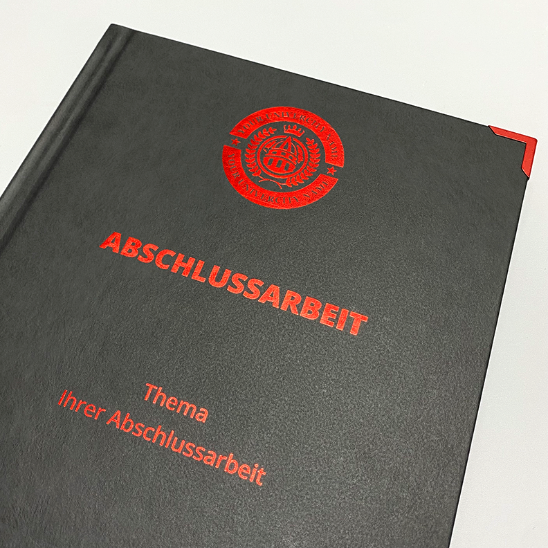 Unter dieser Kategorie können Sie Ihre Abschlussarbeiten gedruckt und gebunden in einer sehr exklusiven und hochwertigen Bindemappe "Kunstleder" mit Coverdruck und vielen Extras bestellen.