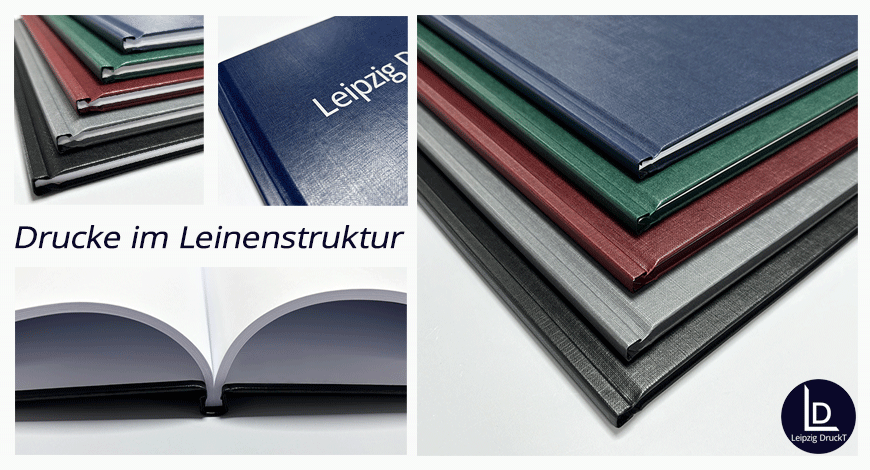 Unter dieser Kategorie können Sie Drucke im Hardcover mit Leinenstruktur bestellen. Diese Hardcover Bindemappe hat eine Leinenstruktur und somit ein sehr hochwertiges Erscheinungsbild. Die Oberfläche des Hardcovers ist matt lackiert, hässliche Fingerabdrücke werden so vermieden. Dieses Leinen ist äußerst strapazierfähig und langlebig. Bei dieser Oberfläche der Bindemappe ist eine hochwertige Beschriftung in verschiedenen Farben möglich.