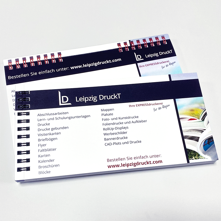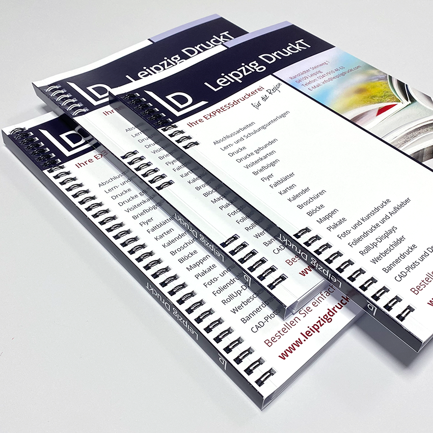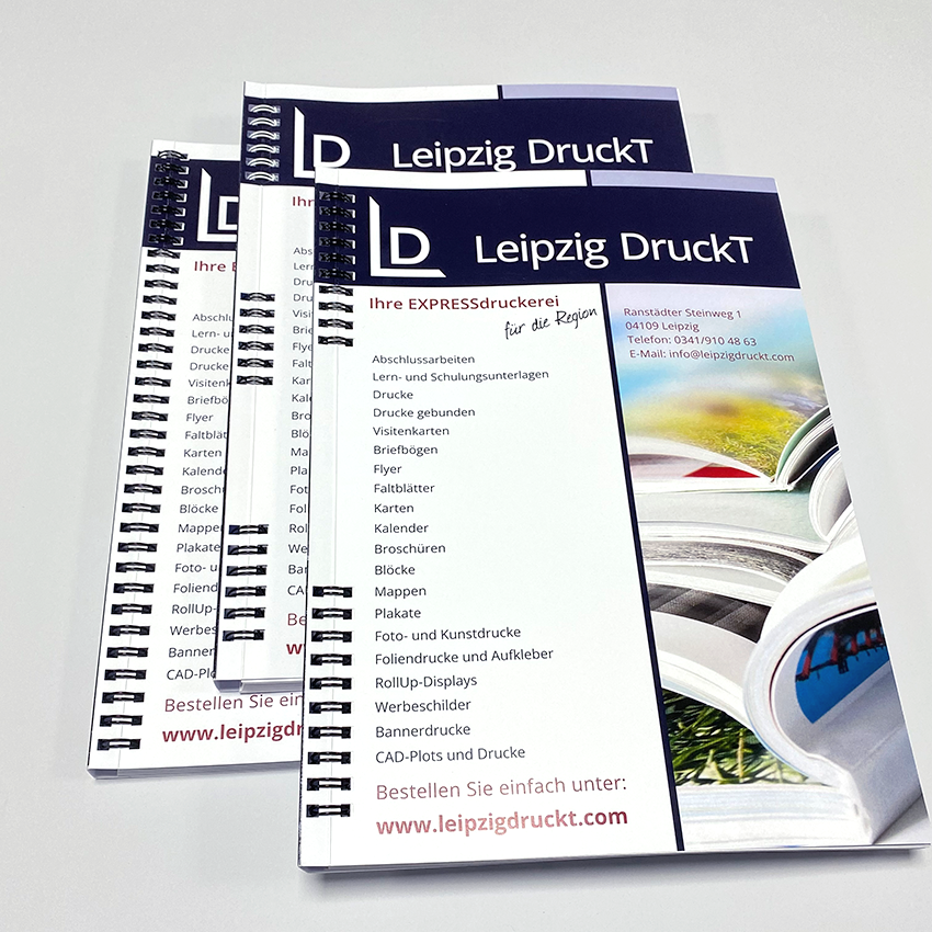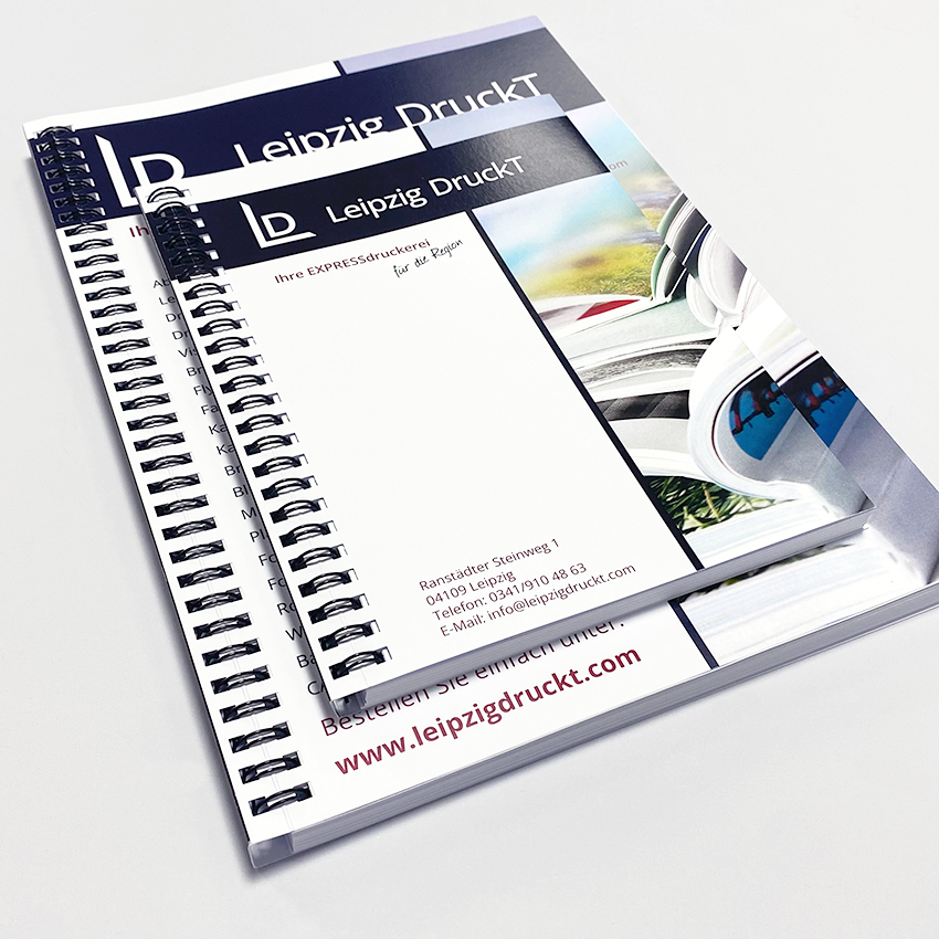 Wir fertigen Drucke mit halbverdeckter Bindung in verschiedenen Formaten.