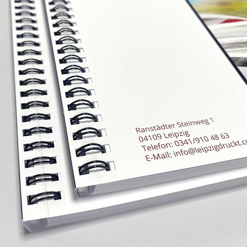 Die halbverdeckte Bindung ist eine edle Variante der klassischen Drahtkamm- bzw. Wire-O-Bindung. Dabei wird der Draht teilweise durch den Umschlag oder ein Deckblatt überdeckt. Das Ergebnis: eine hochwertige, ruhige Optik, bei der nur ein schmaler Teil der Bindung sichtbar bleibt – perfekt für ein professionelles Erscheinungsbild mit besonderer Finesse.
